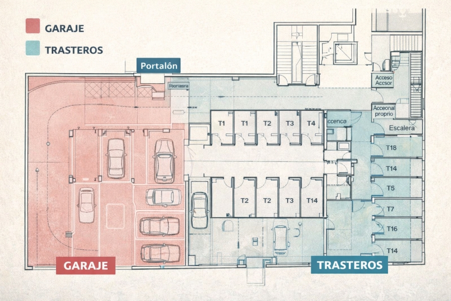 No existe una regla general para todas las comunidades. La exención respecto de los gastos del garaje solo es posible cuando concurren determinadas circunstancias, entre ellas que no exista un derecho de uso sobre las zonas del garaje destinadas al acceso y circulación de vehículos, que los trasteros cuenten con accesos independientes y que el título constitutivo o los estatutos excluyan a los trasteros de esos gastos.